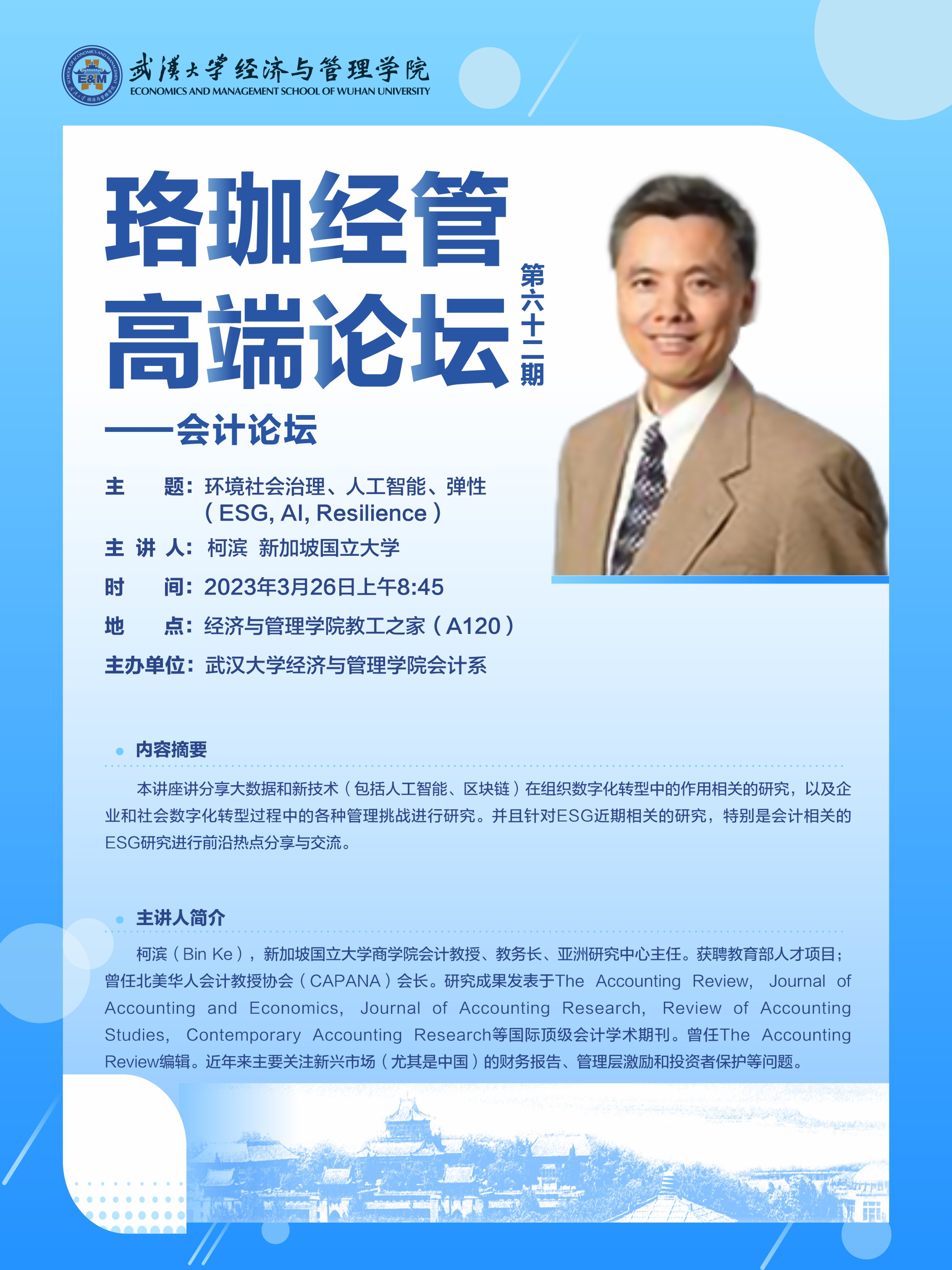 珞珈经管高端论坛第六十二期——会计论坛
