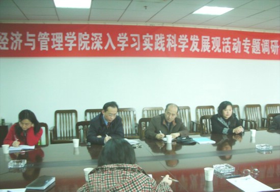 2009年4月3日,以“教风学风建设”为主题的深入学习实践科学发展观专题调研会在学院第三会议室举行。会议由学院学习实践科学发展观活动领导小组成员、副院长曾国安主持。座谈会分为两个阶段,第一阶段是教师座谈会,第二个阶段是学生座谈会。