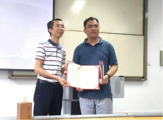 温兴琦老师为韩英春颁发聘书和奖杯