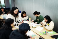 在手工制作区,参与者可以根据自己的兴趣选择衍纸画、立体拼图和秘密花园涂色三个项目,每个项目都有专门的工作人员现场指导,有人专心衍纸画,用彩色衍纸条和胶水搭配创作出极富创意的衍纸画,喜欢立体拼图的同学用木质材料搭建模型,喜欢秘密花园的同学用彩铅或彩笔在明信片上填色。
