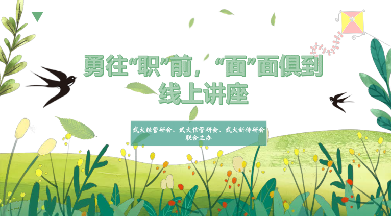 为了帮助学生们正确了解、认识到疫情下的就业形势,从而使同学们更好地通过网申和面试的层层筛选,斩获Offer,学院研究生会就业实践中心联合信管院研会、新传院研会筹办的勇往“职”前,“面”面俱到面试指导交流会第一期线上讲座于2020年4月12日晚上7点成功举行。本次讲座研究生会就业实践中心荣幸地邀请到武汉万科招聘总监柳文莱老师作为活动嘉宾,以及近1000名学生参与本次讲座。