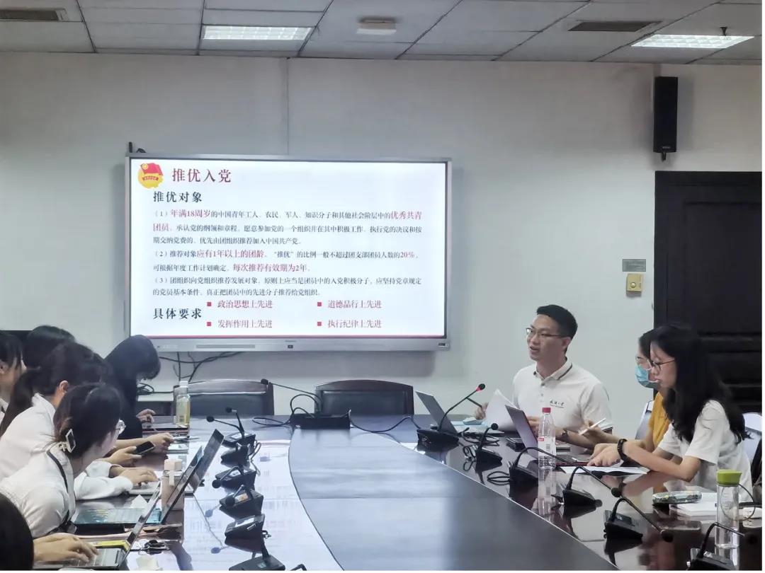随后,院团委组织部(研究生)工作人员杨晔同学向大家介绍了本学年团支部相关工作计划;同时,她围绕三会两制一课、智慧团建系统、主题团日活动等方面开展基础团务工作培训;此外,她还就相关团组织规范建设的文件与各位团支部一起学习。
