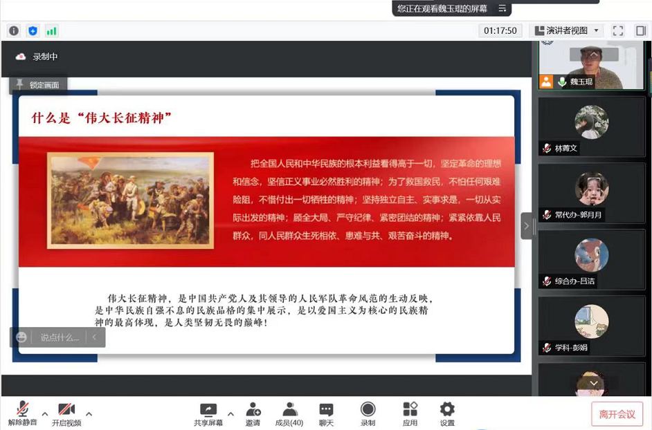 会议第二项是开展理论学习。本次理论学习聚焦“伟大长征精神”,以讲解与阅读结合的形式展开。经管学子们共同学习了“伟大长征精神”的历史起源和核心内容,深入学习了习近平总书记在纪念红军长征胜利80周年大会上的讲话,最后大家相互交流推荐了相关书籍、文章及电影。