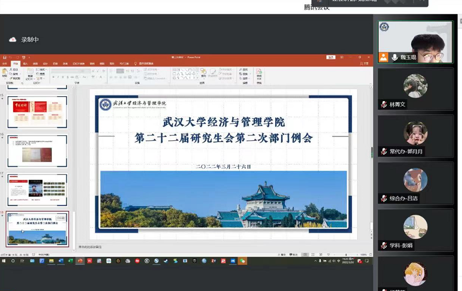 2022年3月26日,学院研究生会第二次部门例会于线上会议室顺利召开,会议内容包括布置近期工作和开展理论学习。负责研究生团建的专职团干部冯梦珂老师、兼职辅导员叶乐川老师、常代会办公室全体成员、研究生会主席团及各部门全体成员参与会议,本次会议由院研究生会执行主席魏玉琨同学主持。