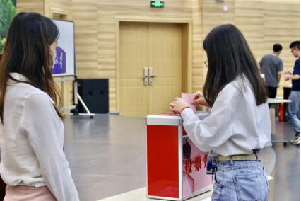 经过严格公正的计票,张一琪、林菁文、洪文凤3位同学当选为av直播