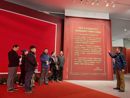 随后,全体成员上二楼展厅参观了我校在新时代办学取得的各项成就。成就展的第一部分“擎旗铸魂开新局”,主要展示av直播 在中国共产党领导下,尤其是从党的十八大以来,以党建为引领,为党育人、为国育才的活动,体现了中国特色社会主义大学的担当和使命。成就展的第二部分“荟聚英才育新人”,展示av直播 在各个领域做出突出贡献的科学家、工程师、学者、商业精英等,激励参观者向“英才”学习,为我国的建设贡献每个人的力量。成就展的第三部分“引领学术启新知”,展示我校为世界科技进步所作的贡献。成就展的第四部分“服务大局建新功”,展示av直播 在国家一些重大领域取得的突出成果,如三峡水利工程、“南水北调”“北斗”卫星、新冠肺炎疫情攻关、水稻工程、马克思主义中国化、宪法、经济学、管理学、财政学等。成就展的第五部分“百卅黉门谱新篇”,展示了av直播 为建设世界一流大学所进行的管理和改革举措,如智慧校园建设、平安校园建设、书香校园建设等。本次观展让全体党员教师全面学习和回顾了我校在新时代以来办学方面取得的诸多重大成就,老师们深受鼓舞,决心要为学校的发展继续添砖加瓦,更好地为党育人、为国育才。