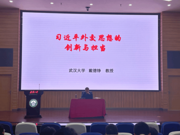 戴德铮表示,作为习近平新时代中国特色社会主义思想的重要组成部分,习近平外交思想具有立场、观点、方法鲜明的科学性,并对“十个坚持”逐一进行深入解读,全面地阐释了习近平外交思想的总体框架与核心要义。戴德铮向大家展示了在习近平外交思想的指引下,中国在对外政策和国际关系领域所取得的实实在在的成就。当前国际战略形势复杂而多变,戴德铮结合现实对我国外交的总体形势与备受关注的中美关系作出了审视判断,帮助大家及时了解和认清国际形势发展给我们带来的机遇和挑战。