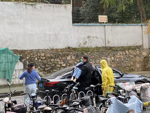得知学生生病网购药物无法送到,周楷唐老师立即动身前往校门处对接,及时将药品取回。