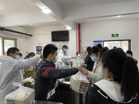 学校文理学部、信息学部、工学部学生宿舍实行静默管理,学生全部待在寝室,由学校组织送餐,av直播老师负责送往包保楼栋寝室。老师们不断调整工作方法、提高效率,仅20分钟分发完毕近3000份餐,保证同学们能吃到热气腾腾的饭菜。