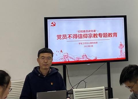 3月28日,学院行政第三党支部在A123-6会议室开展党员不得信仰宗教专题教育主题党日。支部全体党员参会,会议由支部书记熊壮同志主持。