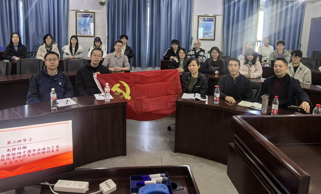 教师第四党支部与保险专硕党支部联合举办了以学习党的二十届四中全会精神为主题的党日活动。活动通过实践先行、理论学习、朋辈启迪等环节,全面深化党员师生对国民经济和社会发展规划的理解。教师第四党支部书记潘国臣、纪检委员杨霞、保险与精算系系主任王正文、研究生工作办公室主任沈仕雄以及保险专硕党支部与团支部同学共同参与此次活动。活动由保险专硕党支部书记王锐霞同志主持。