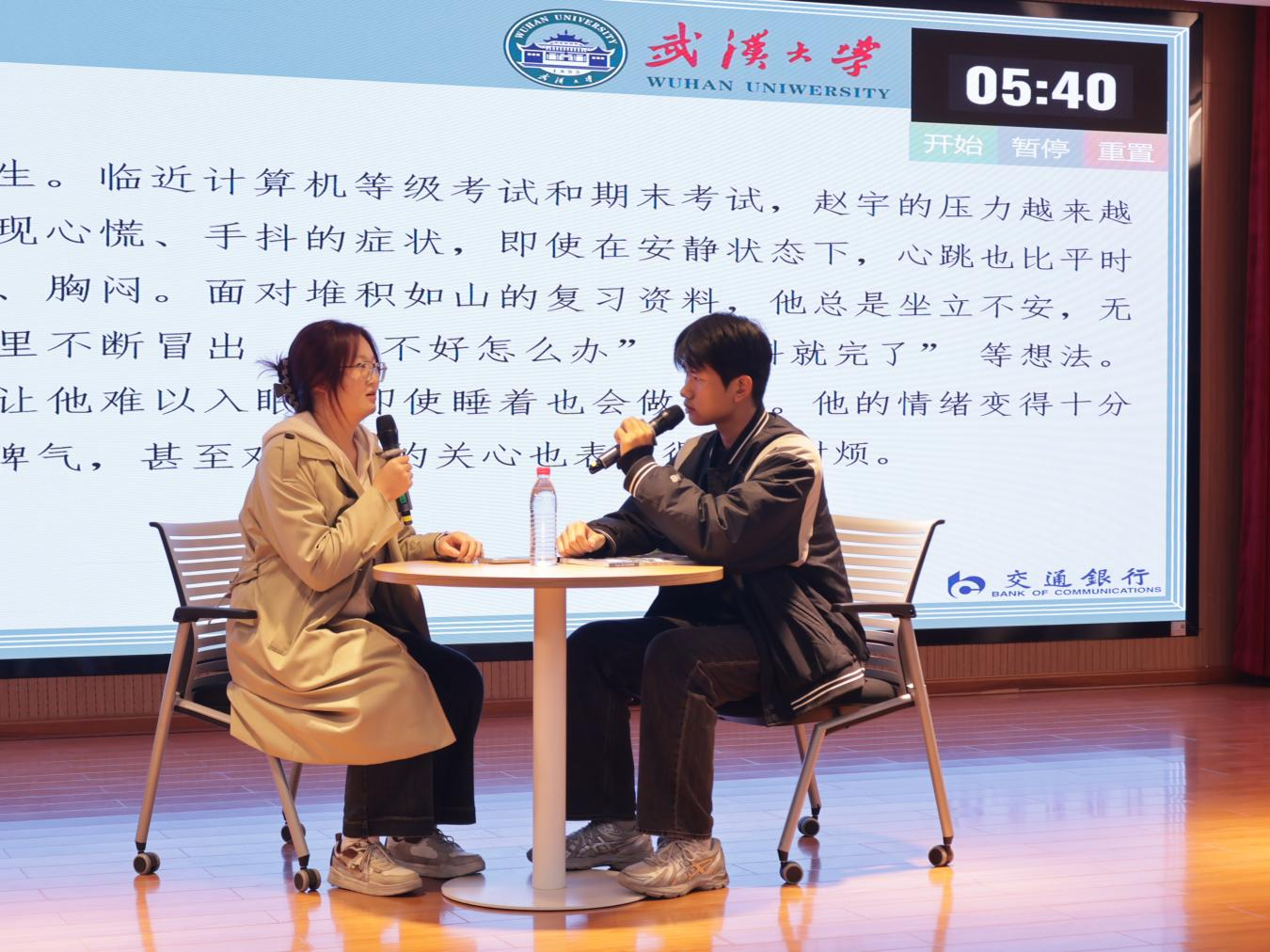 天壕珞珈梧桐报告厅顺利举行。本次活动以“朋辈同行,温暖相伴”为主题,旨在深化朋辈心理互助理念,增强学生心理支持能力,营造健康和谐的校园心理氛围。来自各学院的十支参赛队伍围绕大学生常见心理困扰,通过情景模拟的形式展开竞技,呈现了一场温暖而富有深意的心灵交流盛会。