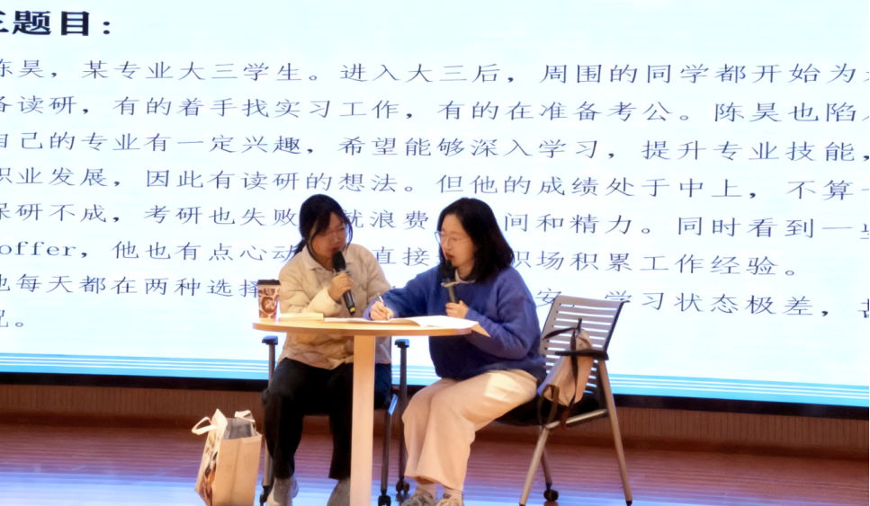 决赛聚焦大学生常见的心理困境,涵盖学业压力、情感困扰、未来规划、人际关系等多方面议题。各参赛队伍在8分钟的情景演绎中,分别扮演“求助者”与“朋辈支持者”,运用专业倾听、共情表达与心理疏导技巧,生动展现了朋辈之间相互支持、共同成长的力量。现场氛围温馨而热烈,参赛者的真诚演绎引发了观众的广泛共鸣。