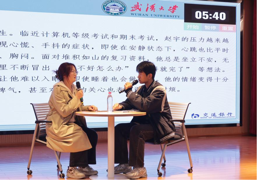 本科生李雅洁、杨文德、薛涵今团队在决赛中抽到的案例聚焦大三学生赵宇的考试压力问题:临近计算机等级考试和期末考试,赵宇出现心慌、手抖、失眠等症状,情绪暴躁且学习效率低下。团队在比赛中精准识别了赵宇的焦虑情绪,运用朋辈倾听技巧与压力管理策略,引导其制定合理复习计划,并提供情感支持。他们的表现充分体现了朋辈互助“信任、理解、支持”的核心价值,赢得了评委高度认可。